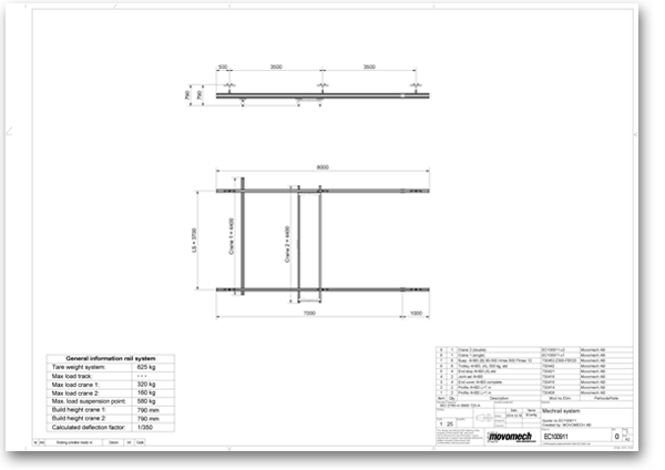 Mechrail skensystem kan snabbt och enkelt konfigureras med hjälp av EConfig™ – den webbaserade skensystemskonfiguratorn utvecklad av Movomech. Förutom komponenter och priser genereras även en CAD-modell i 3D av systemet – en tidsbesparande och efterfrågad funktion!