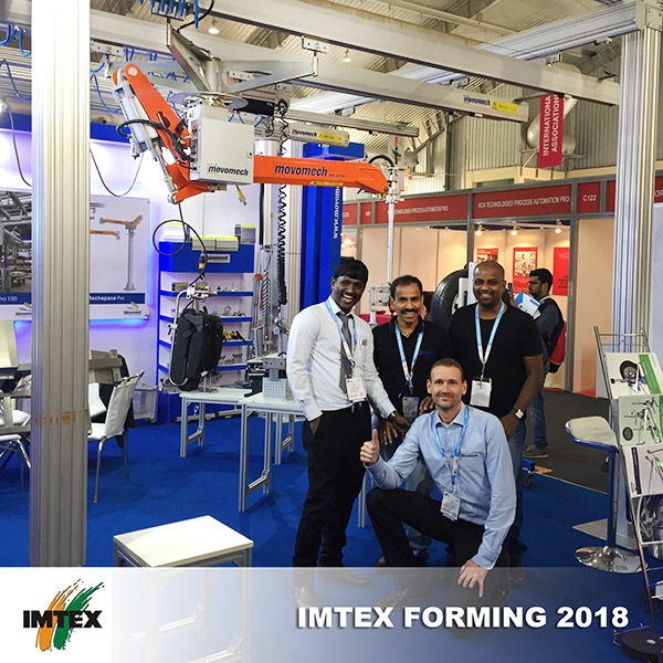 Movomech Sunnex India visar Movomechs hanteringslösningar på en mycket välbesökt IMTEX Forming 2018 i Bangalore, Indien.