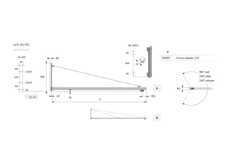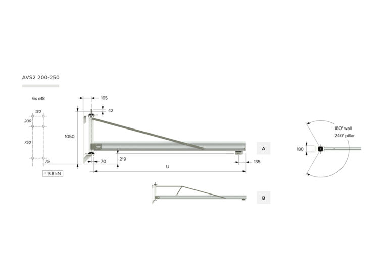 Mechcrane™ väggsvängkranar LVS/AVS erbjuds i valfri längd om 0,5 m enligt specifikation nedan.