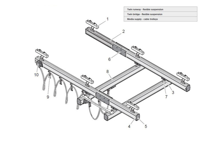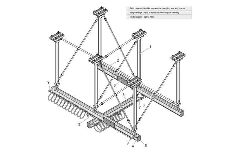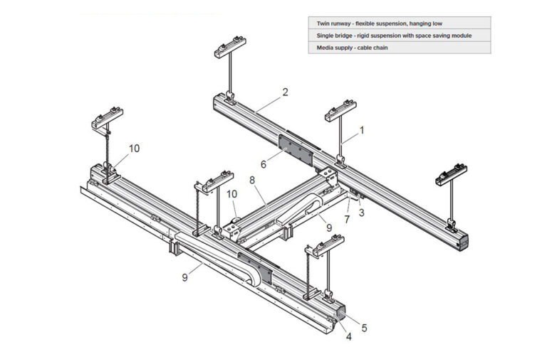 Suspension of crane system - Mechrail aluminium crane system by Movomech