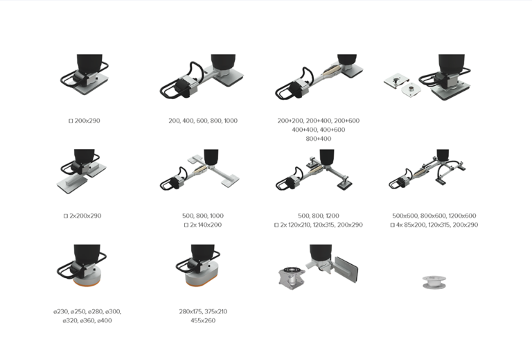 Vacuhand Pro har ett omfattande tillbehörsprogram med olika varianter av lyftenheter, drivkällor, tillbehör och framförallt olika gripdon och specialsugfötter för att passa lyftobjekt i olika storlekar och material.
