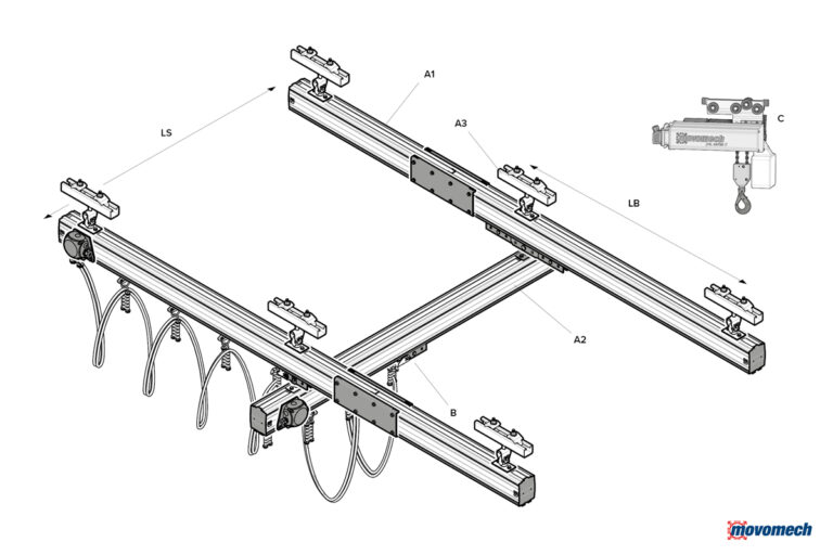 Mechrail lättraverssystem består av extruderade aluminiumprofiler i vilka löpvagnar, upphängningar och tillbehör monteras för att åstadkomma en ergonomisk och flexibel förflyttning i x/y-led vid lyfthantering.