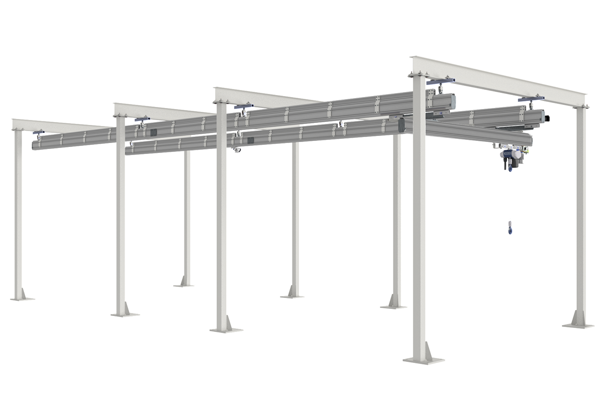 Då ett traverssystem inte kan monteras direkt i innertaket i en lokal behövs en en tak- eller golvmonterad stödstruktur i stål som traverssystemet därefter monteras i.